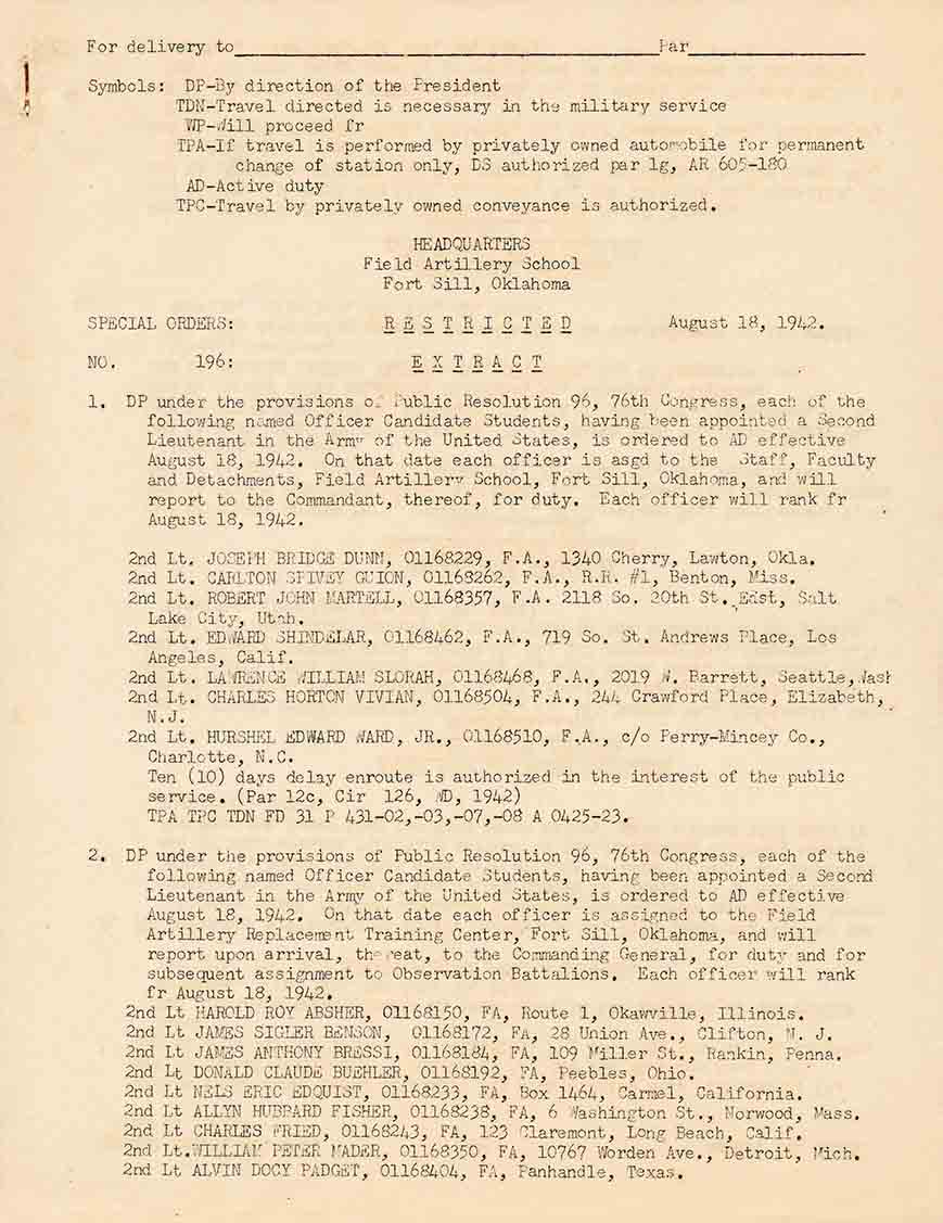 - HQ, 244th F.A. Bn., APO 403, Major Carey A. Clark Commanding, Letter to Officers and Enlisted Men, History of the 244th, 26th June 1945